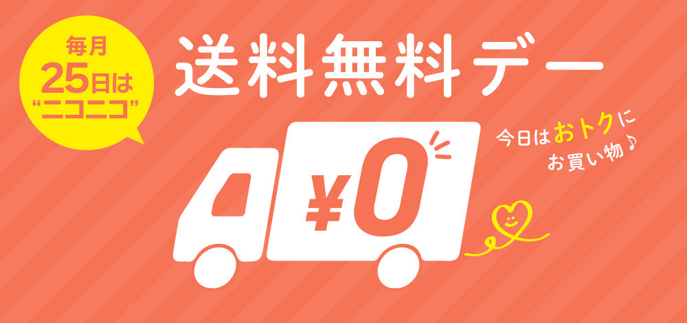 いつも当店をご愛顧いただき、誠にありがとうございます。 毎月25日は送料無料デー! 通常税込3,980円以上のお買い物で送料無料のところ本日25日は1,500円以上のお買い物で送料無料となります。 ※おひとり様1回まで、1,500円以上ご購入が対象です。※以下のページリンクからご購入いただいた場合送料無料クーポンはお会計時に自動で適用されます。※以下のページリンク以外からご利用の場合はクーポンコード【2525cp】のご入力が必要となります。 送料無料でお買い物は こちらから← ぜひこの機会に、FUNS MARKETでのお買い物をお楽しみください♪