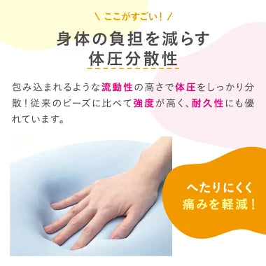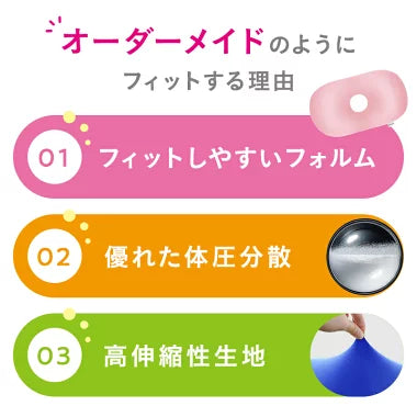 頭や腰、おしりなど、あらゆる体形にフィットしやすいフォルム!ヒップサポーターとしては勿論、うつ伏せ寝枕としてもご利用頂けます。