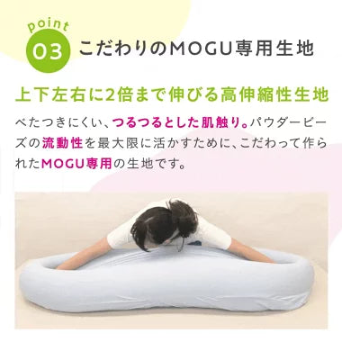 ■製品名:MOGU ホールピロー ■用途:クッション■組成 本体:ナイロン85%、ポリウレタン15% 中材:パウダービーズ®(発泡ポリスチレン) ■サイズ(約):横350 縦280 高140 (mm)※モニターの発色の具合により、実際の物と色が異なる場合がございます。
