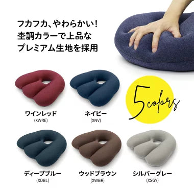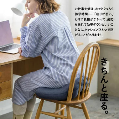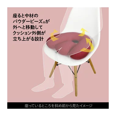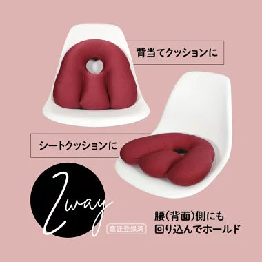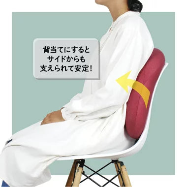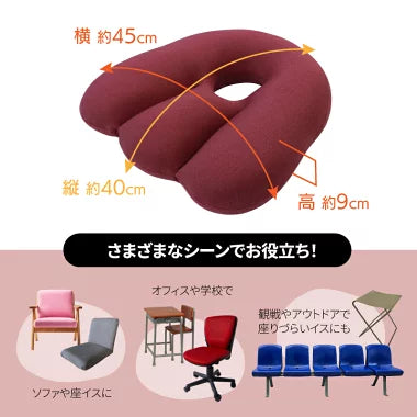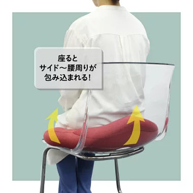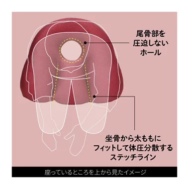 座るとやわらかく包み込むよう座面にフィット。 穴の部分は無圧で、尾てい骨の凸部分に当たりません。 背当てにも使えて便利な、おしりや腰にやさしいシートクッションです。