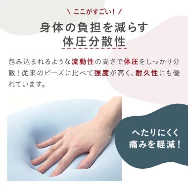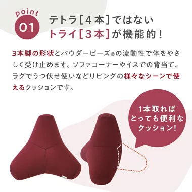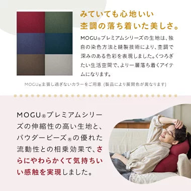 ■製品名:MOGU プレミアムトライパッドクッション ■用途:クッション■組成 本体:ポリエステル90%、ポリウレタン10% 中材:パウダービーズ®(発泡ポリスチレン) ■サイズ(約):横450 縦450 高200 (mm)※モニターの発色の具合により、実際の物と色が異なる場合がございます。