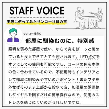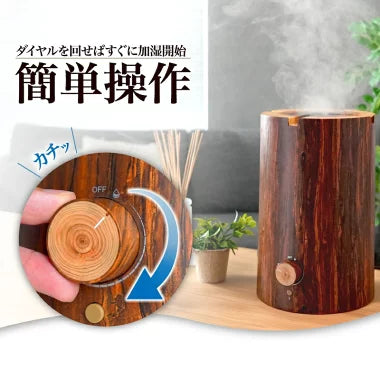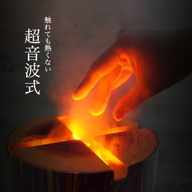 ミスト&LEDでリアルな炎を演出。ヒノキ原木を忠実に再現した、アロマ対応加湿器。